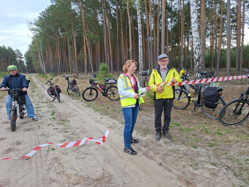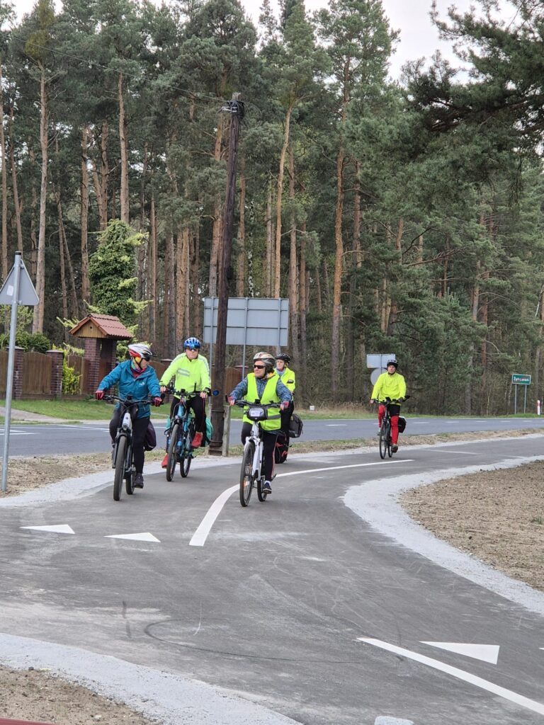 Ze względu na niepewną sytuację pogodową musieliśmy skrócić trasę naszego Rajdu i dlatego pojechaliśmy częściowo wyremontowaną ścieżką rowerową do Żytowania i tam skręciliśmy na dawny szlak drogowy Żytowań – Kosarzyn oznaczony historycznymi kamiennymi drogowskazami, o których opowiadał nam nasz przewodnik kol. Tadeusz Raut.