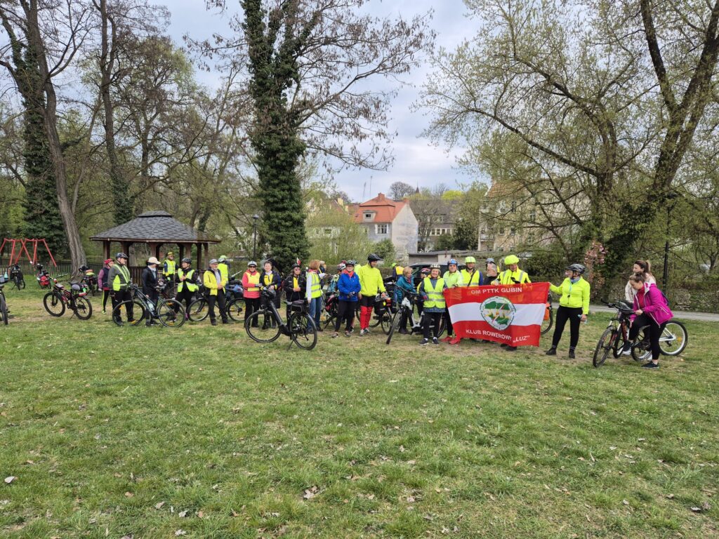 Wystartowaliśmy jak zwykle z Wyspy Teatralnej w grupie ok. 40 rowerzystów naszego klubu, innych kół PTTK Gubin, kół PTTK z Jasienia, Lubska i Krosna Odrzańskiego oraz sympatyków z terenu Gubina.